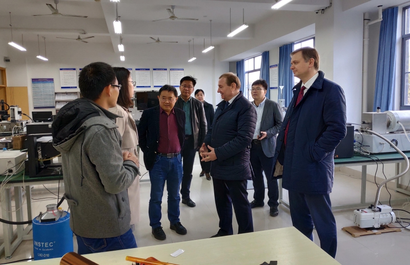 2019年11月19日,乌克兰哈尔科夫国立航空航天大学涅奇波鲁克·尼古拉·瓦西里耶维奇校长一行四人来访我校。胡俊云副校长接待了外宾,机电学院高慧敏副院长、数信学院余德将副书记、国际处施敏颖处长、国际处潘毓青参加了接待。双方简要介绍了各自学校的基本情况,并希望通过开展科学研究、师生互访、联合培养学生等多层次的国际合作项目,使两校合作水平在新的起点上更进一步。会后,外宾参观了我校机电学院。