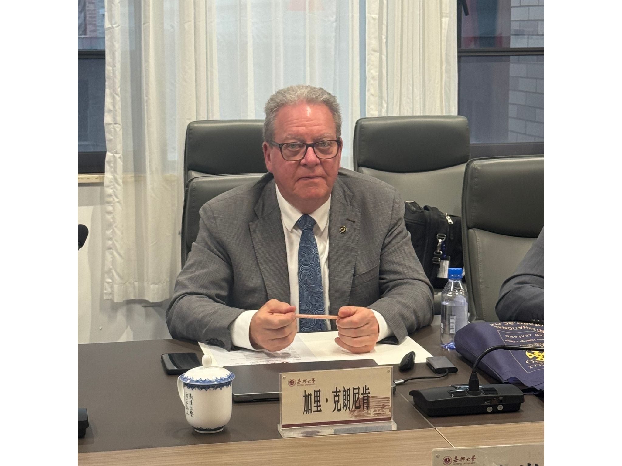 潘巍巍对加里·克朗尼肯院长一行的到访表示热烈欢迎,并详细介绍了嘉兴大学的办学历史、学科布局、人才培养特色及国际交流合作现状。她表示,嘉兴大学始终坚持开放办学理念,积极拓展与世界高水平大学的合作渠道,此次与奥塔哥大学的交流,为双方在多个领域开展务实合作奠定了坚实基础,期待两校通过优势互补实现共赢发展。