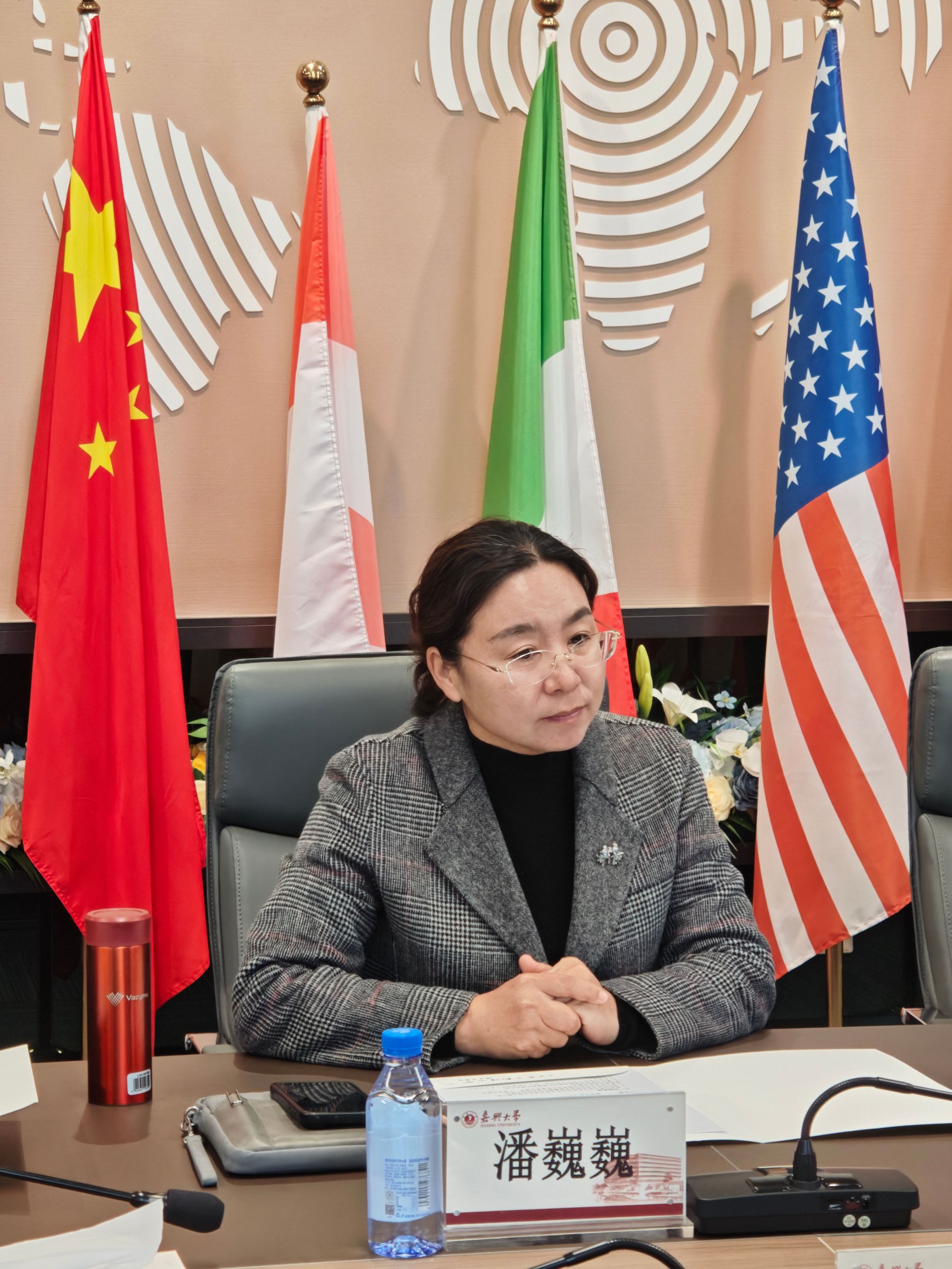 潘巍巍详细介绍了学校的发展历程、学科布局、人才培养特色及国际交流合作现状。她指出,嘉兴大学始终坚持开放办学理念,积极拓展国际合作版图,设计学院作为学校重点发展的特色院系,在学科建设、人才培养等方面具有鲜明优势,此次与马兰戈尼学院的对接,将为设计类专业注入国际化元素,助力学校人才培养质量再上新台阶。